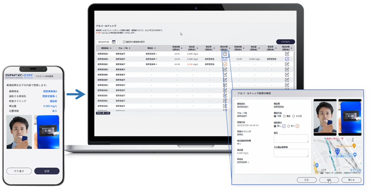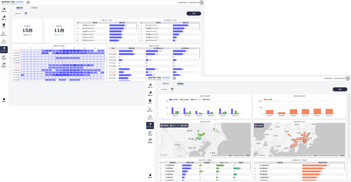 蓄積されたデータを分析することで、稼働状況や危険運転発生個所のハザードマップ化などが可能。蓄積されたデータを安全とビジネスの効率化に活用できます。